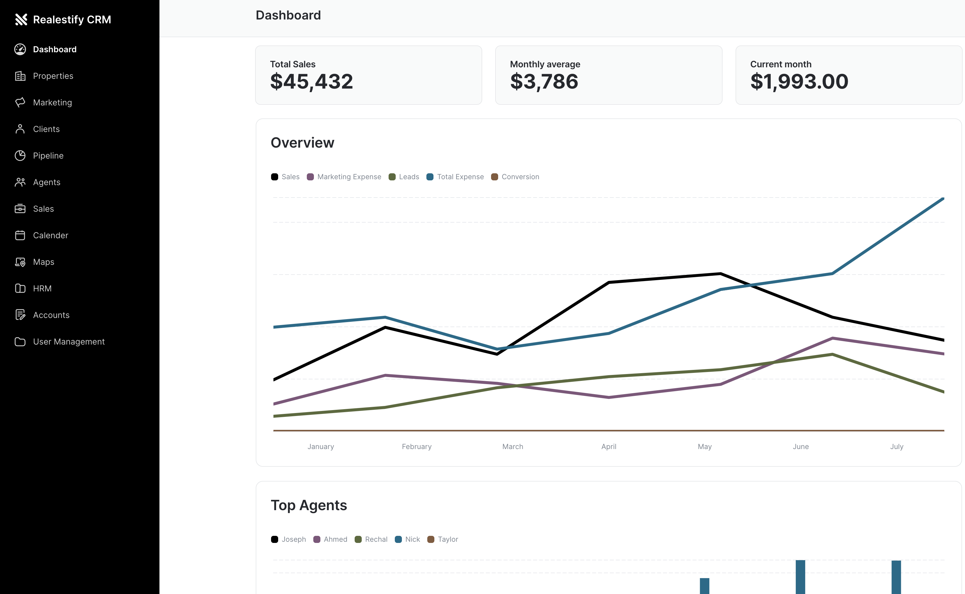 Comprehensive CRM Dashboard for Your Real Estate Agents